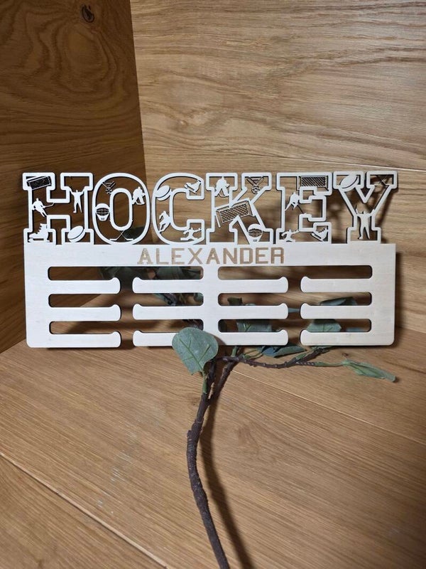 Entdecke den hochwertigen Medaillenhalter aus Holz (39×20 cm), individuell gestaltbar mit Name, Sportart oder Motiv. Perfektes Geschenk für Sportler.