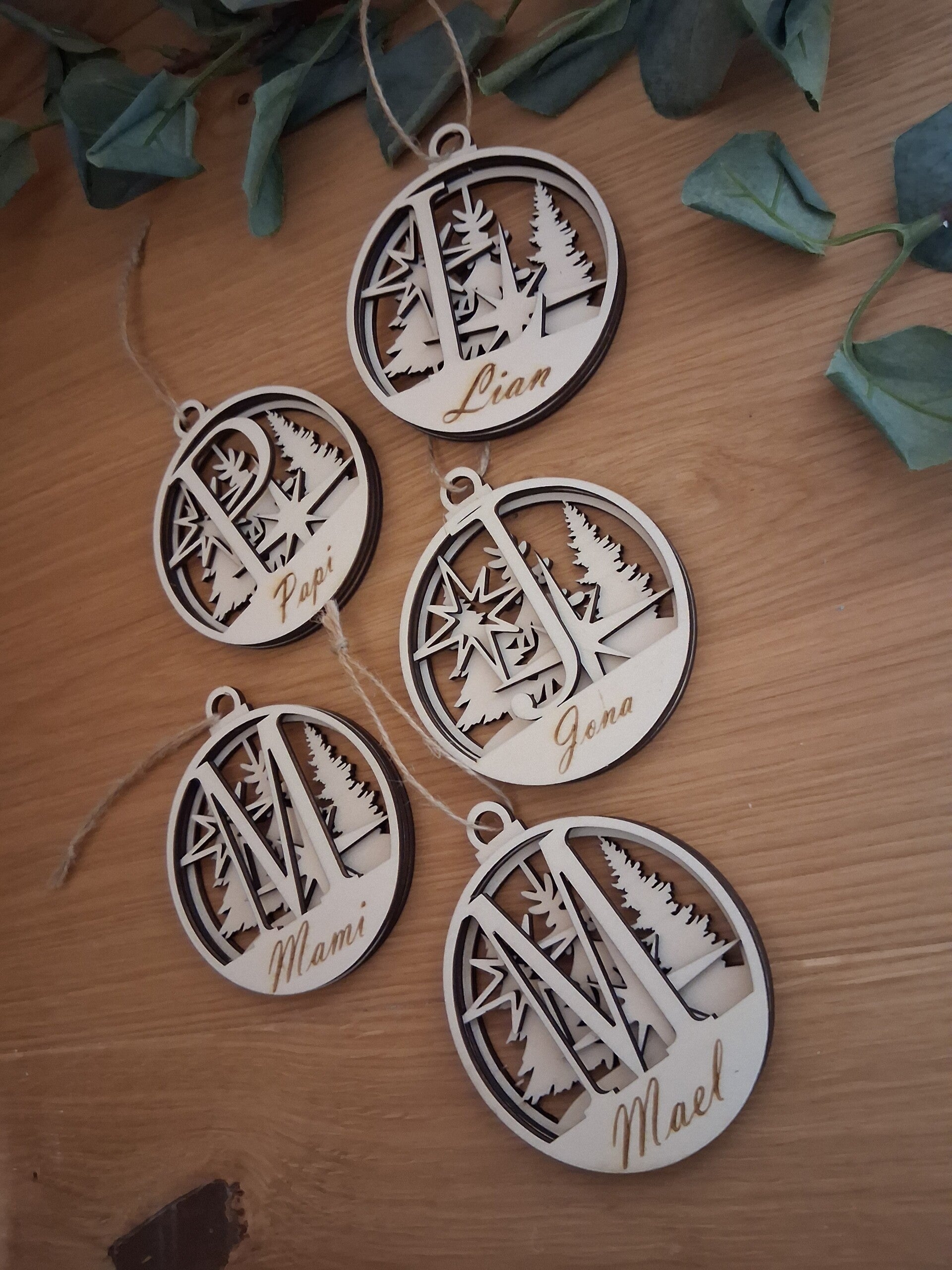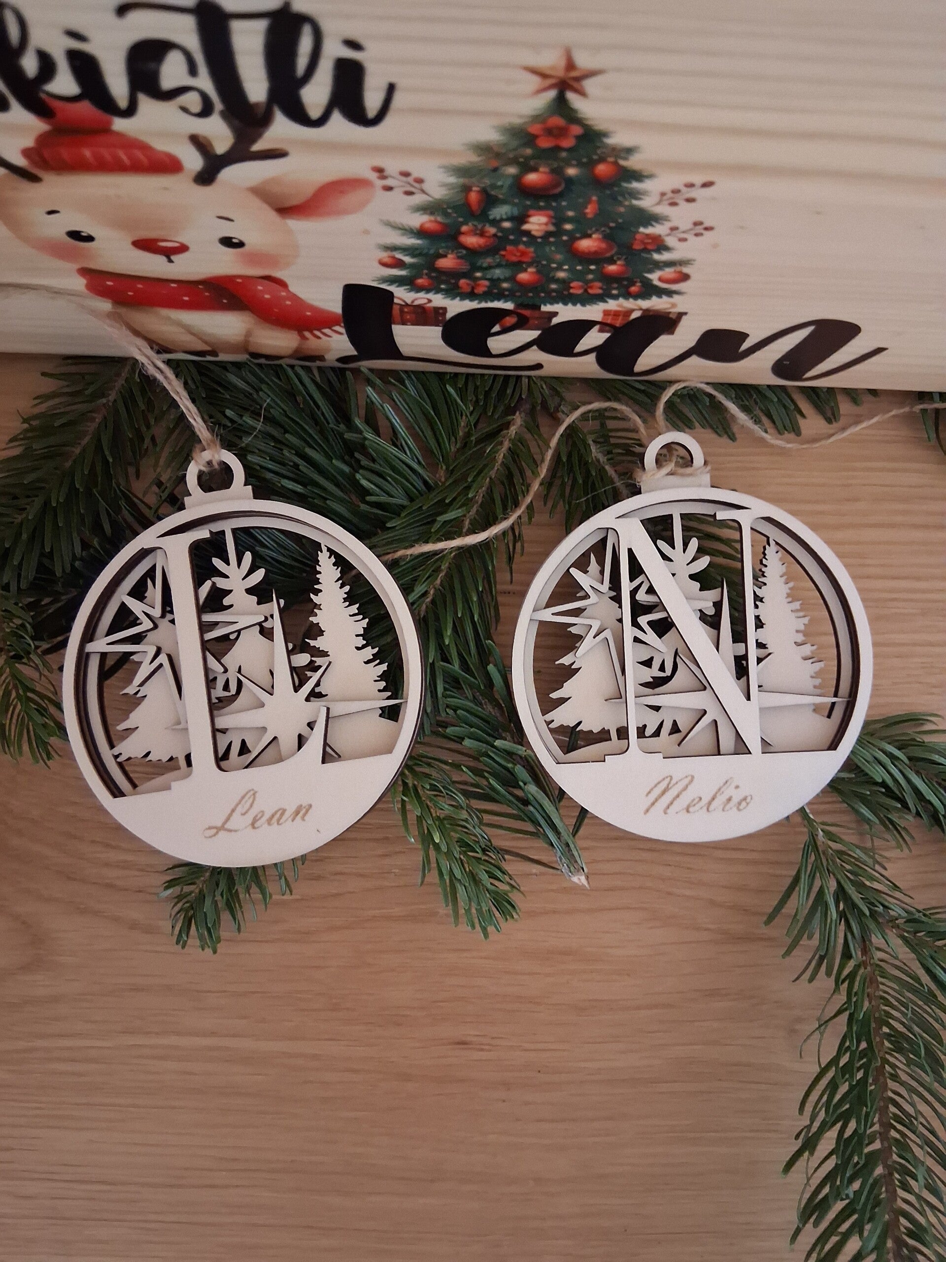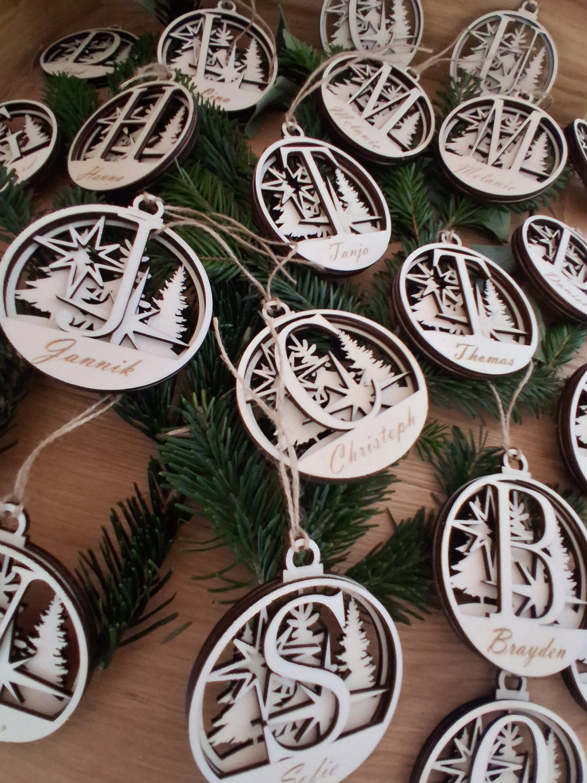 Unsere einzigartigen Holzkugel-Anhänger sind das perfekte Geschenk oder Deko-Element für Weihnachten, Geburtstage oder besondere Anlässe. Jeder Anhänger wird individuell mit einem großen Anfangsbuchstaben sowie dem gewünschten Namen gelasert.